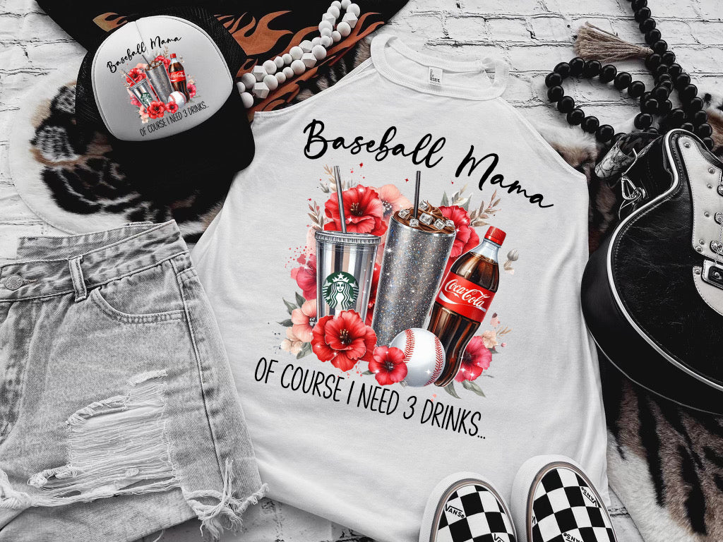 Baseball Mama Of Course I Need 3 Drinks Graphic Shirt