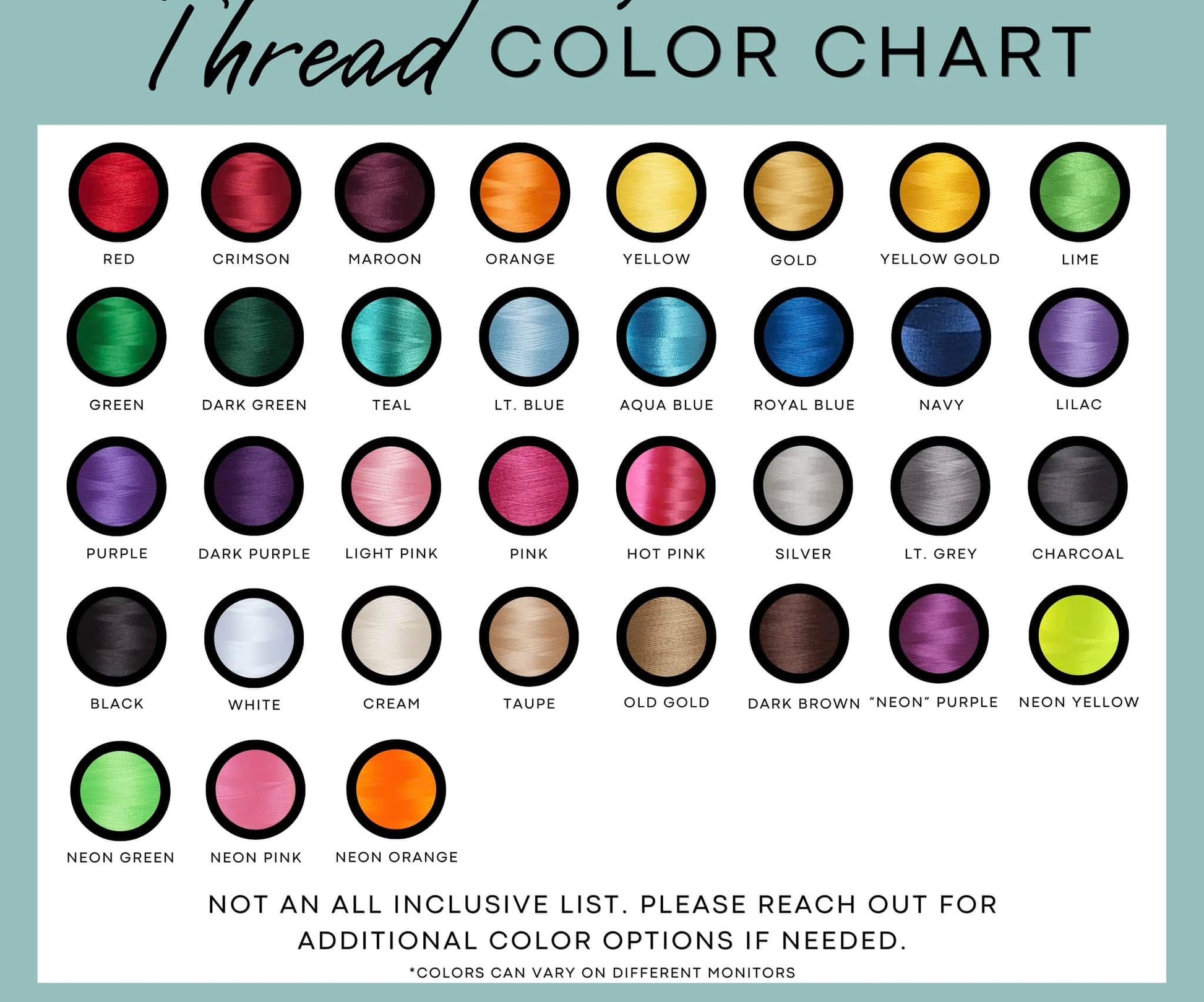 with hat color and thread color.