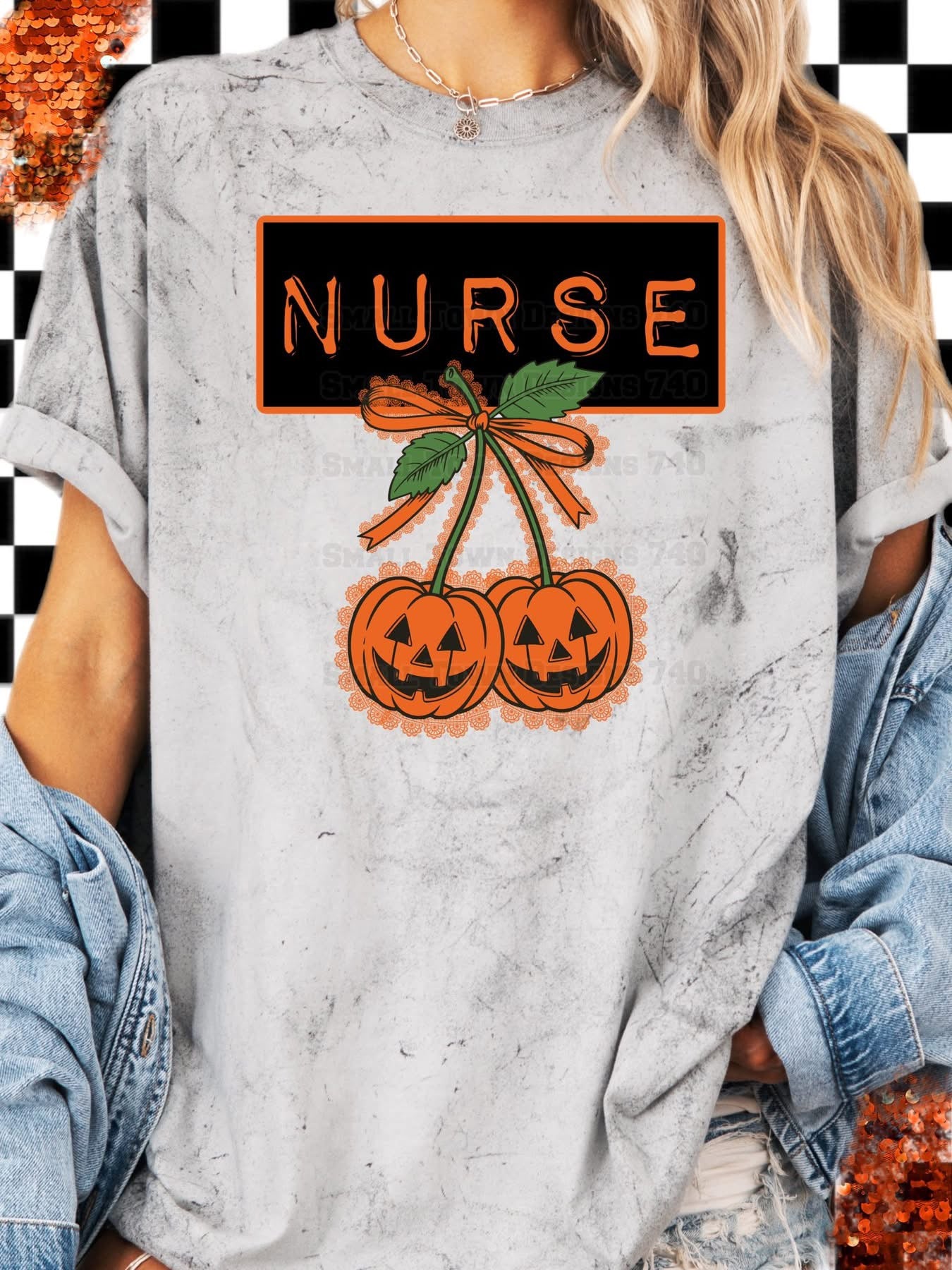 Occupation Faux Lace Cherry Pumpkins Halloween Graphic Shirt