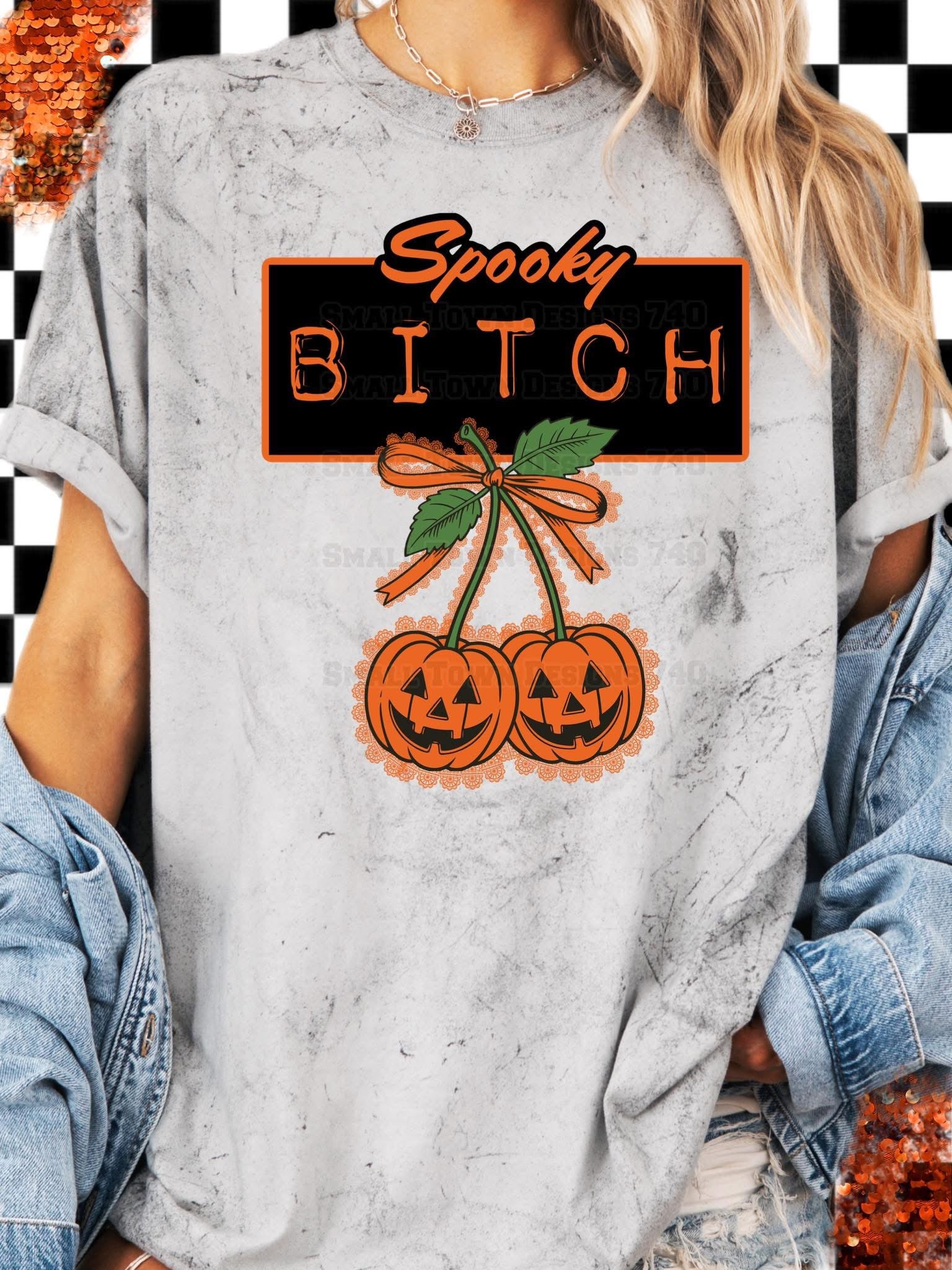 Spooky Bitch Faux Lace Cherry Pumpkins Halloween Graphic Shirt